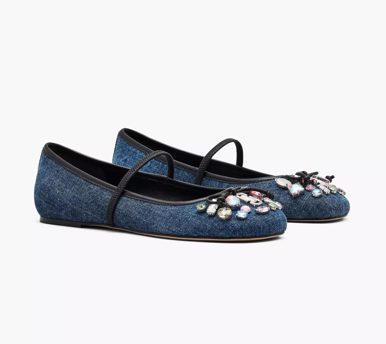 - Crafted in denim and embellished with multicolor crystals inspired by the runway, the Sabrina Ballerina brings a bold, elevated twist to this everyday silhouette. An elastic strap ensures all-day comfort and secure wear. Finished with our signature J Marc hardware for a subtle, distinctive touch.